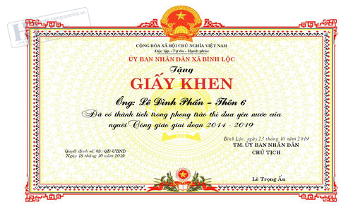 Giấy Khen Cơ Quan UBND