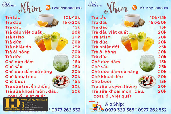 Mẫu Menu Nhà Hàng, Quán Ăn Vặt (204)